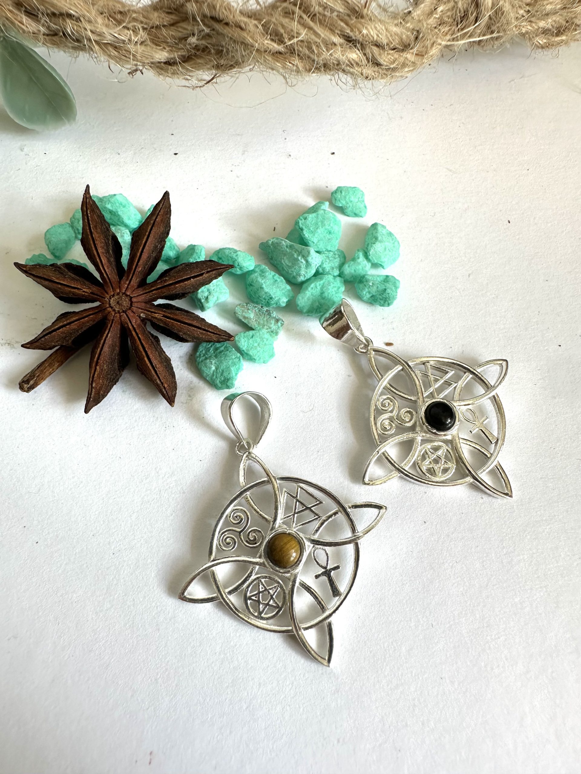 Lleva contigo este colgante Nudo de Bruja con Ojo de Tigre y siente cómo su energía te envuelve en un manto de seguridad y empoderamiento. Es el compañero perfecto para: