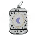 El diseño que aparece representa la carta del tarot «La Luna», esta carta revela una persona que está viviendo emociones fuertes. la Luna inspira y encanta. Presenta la promesa de que todo lo que imaginas puede ser tuyo. La Luna te guía hacia lo desconocido para que puedas permitir lo inusual en tu vida.