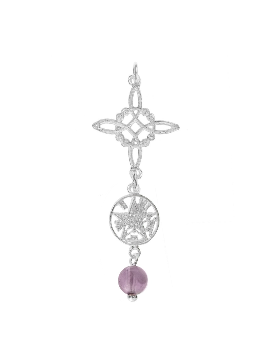 Colgante amuleto doble protección con Nudo de Bruja & Tetragrámaton y piedra natural fabricado en Plata de 1ª Ley 925.