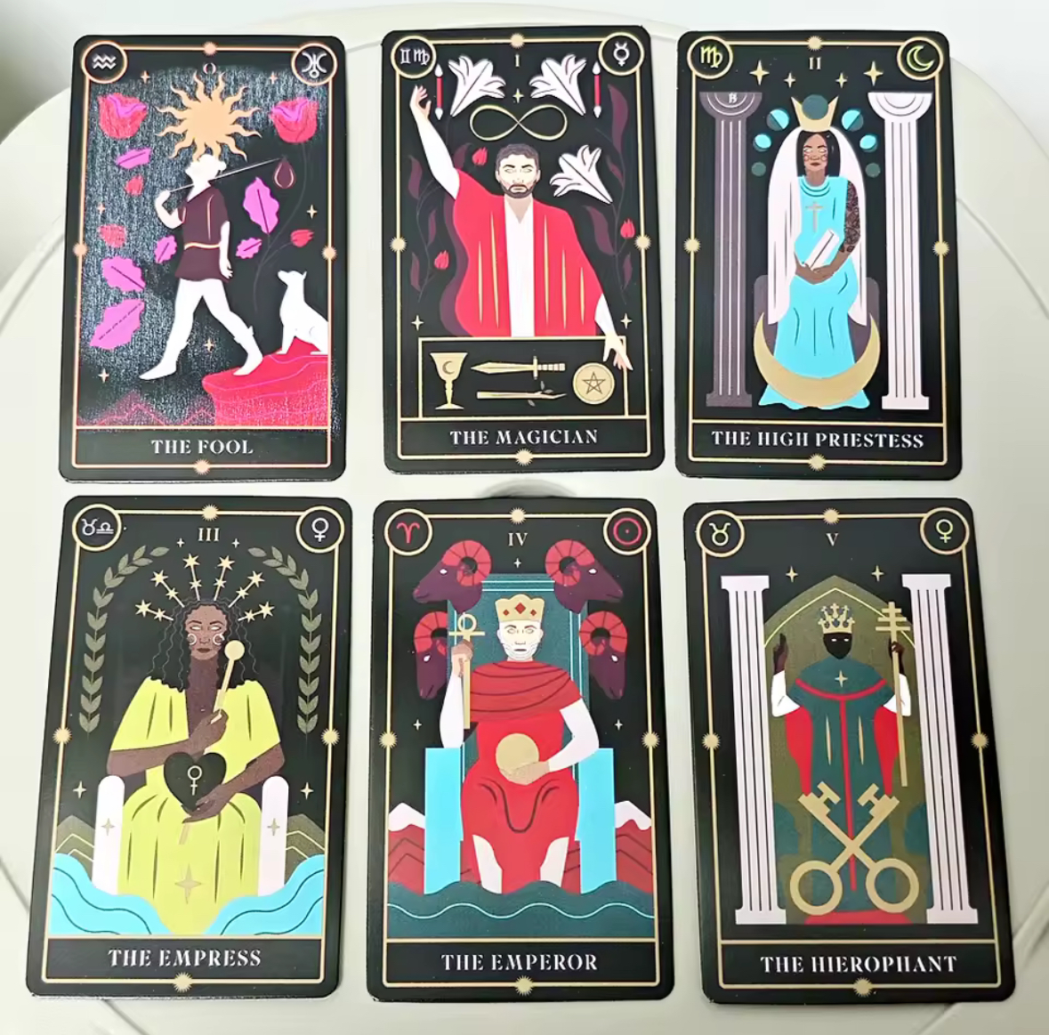 Las cartas están inspiradas en la tradicional baraja Rider-Waite-Smith (RWS), lo que facilita su interpretación si ya conoces los fundamentos del tarot.