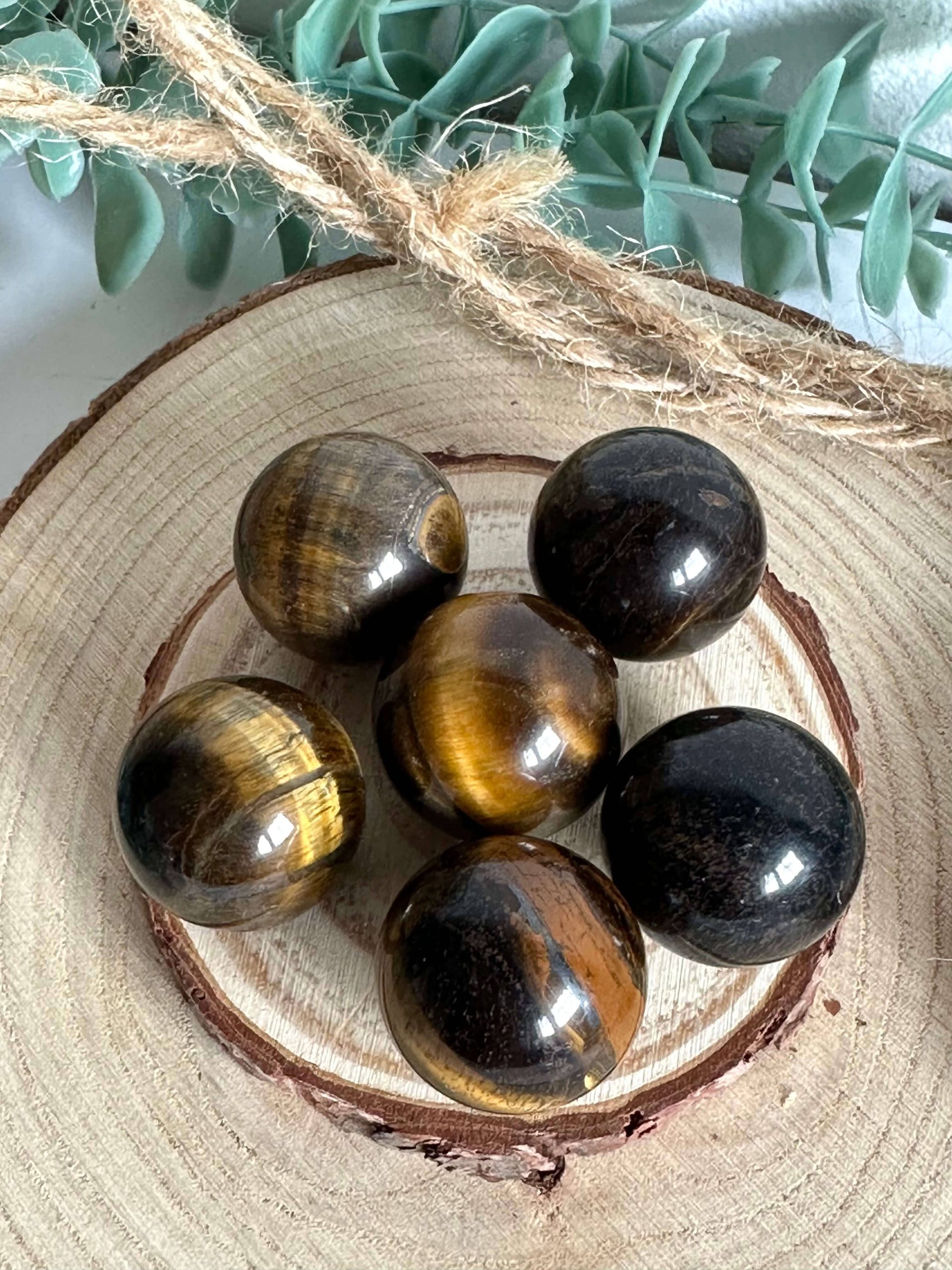 Capturando la luz con su hipnótico brillo dorado y marrón, nuestra Esfera de Ojo de Tigre de 25 mm es más que una pieza de colección; es un poderoso talismán de protección, enfoque y prosperidad.