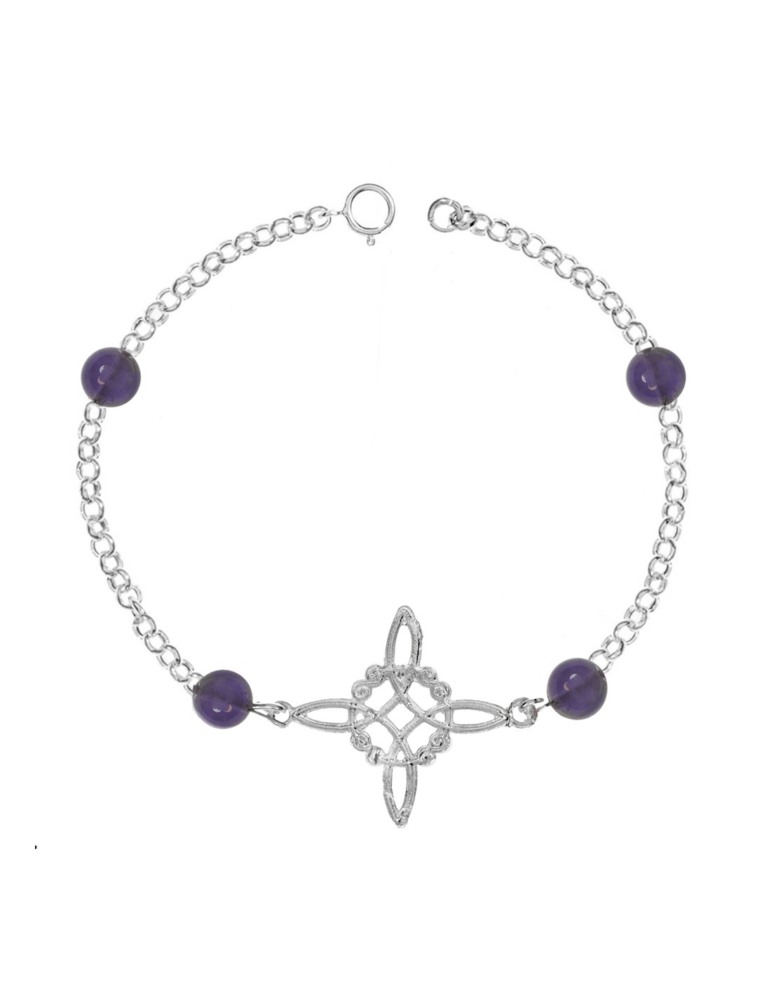 Pulsera amuleto con Nudo de Bruja fabricada en Plata de Ley con cuentas de piedra natural amatista