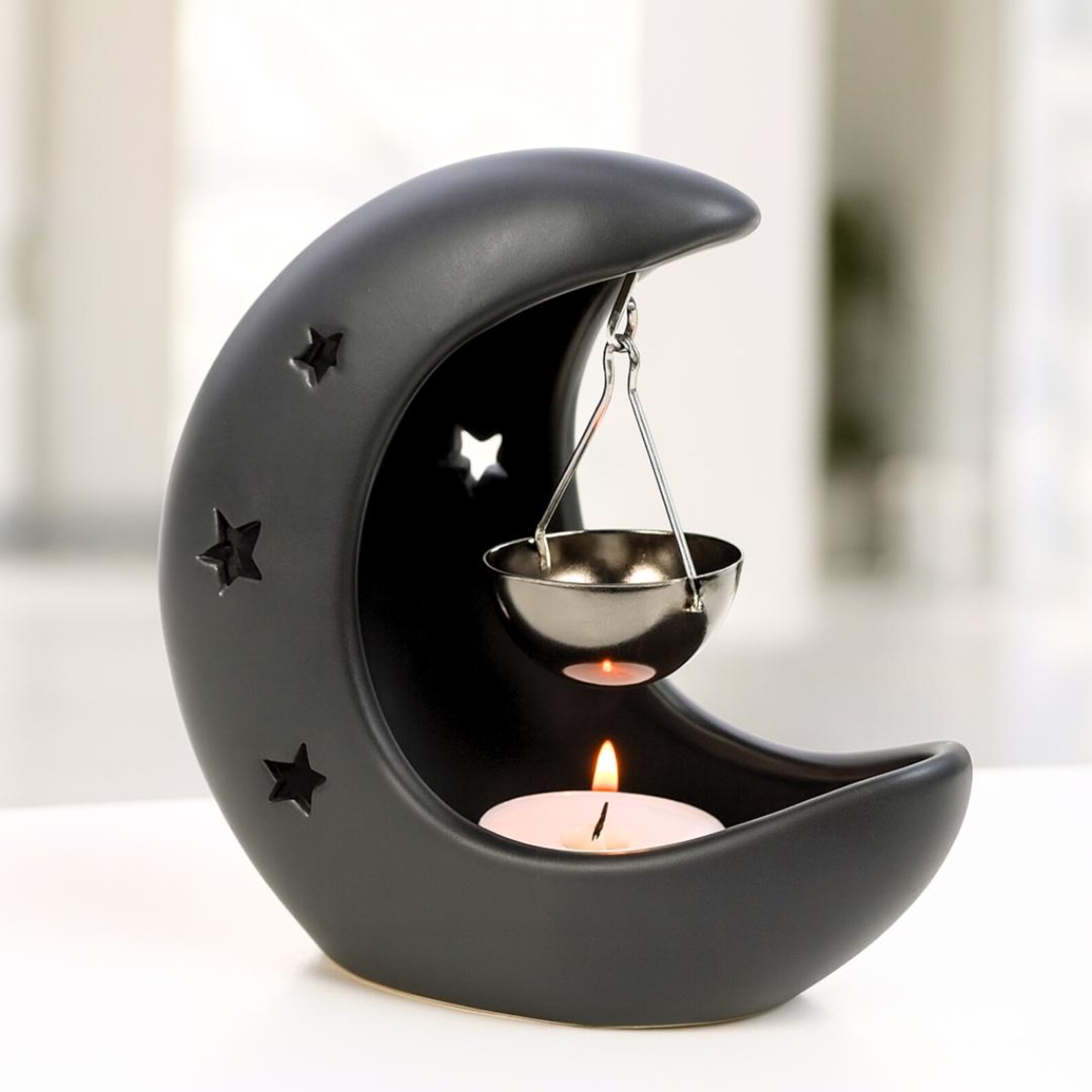 El quemador de aceites y wax melts con diseño de luna es un difusor de aromas que, además de cumplir su función principal, sirve como